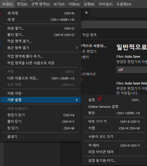 3. 우측 상단의 버튼을 눌러 settings.json 파일에 설정하고 싶은 내용을 입력합니다.