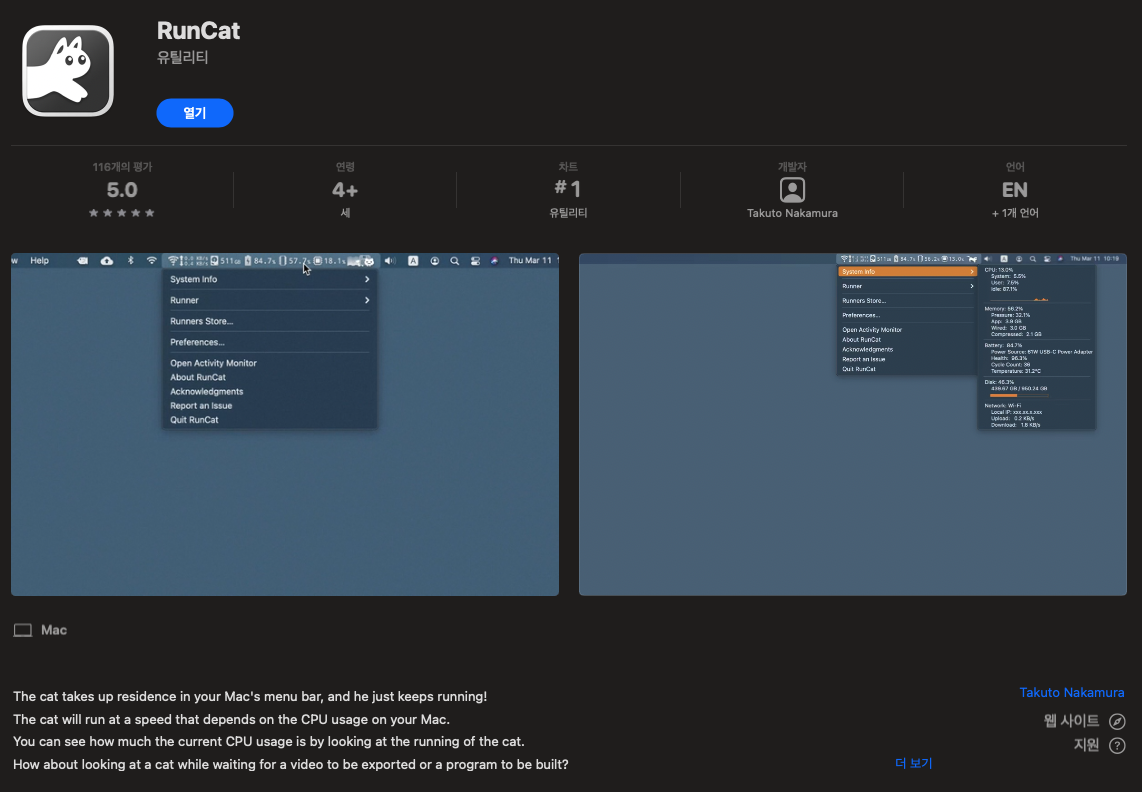 [Mac] Mac 꾸미기 - Run Cat 본문